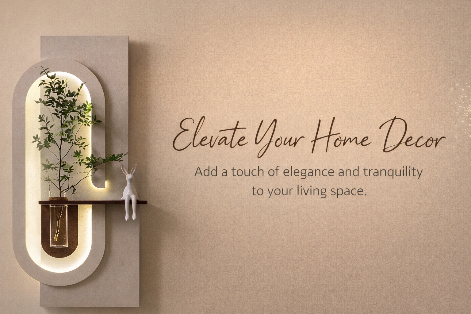 DR Homes Sandstone LED Wall Art Panel with Pampas Shelf